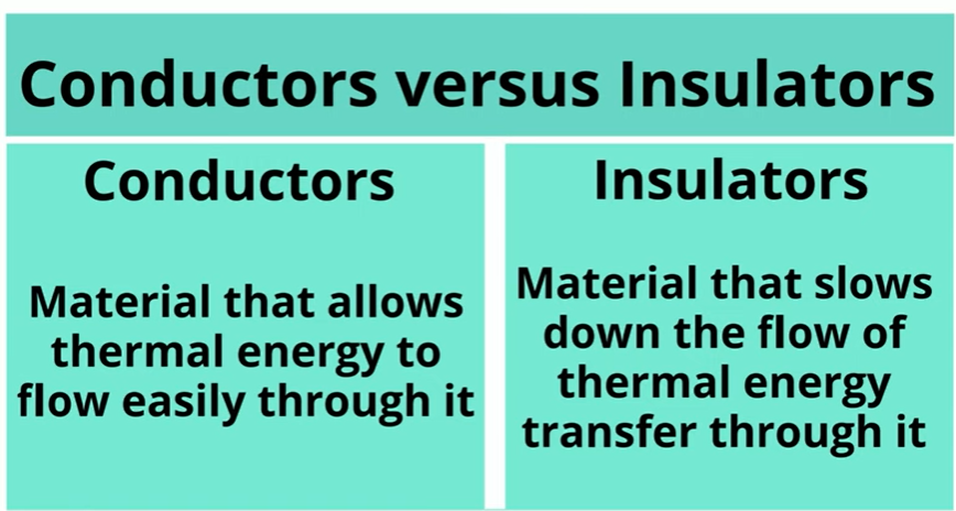 Create a chart in your homework book with two columns labelled: Thermal Conductors and Thermal Insulators.